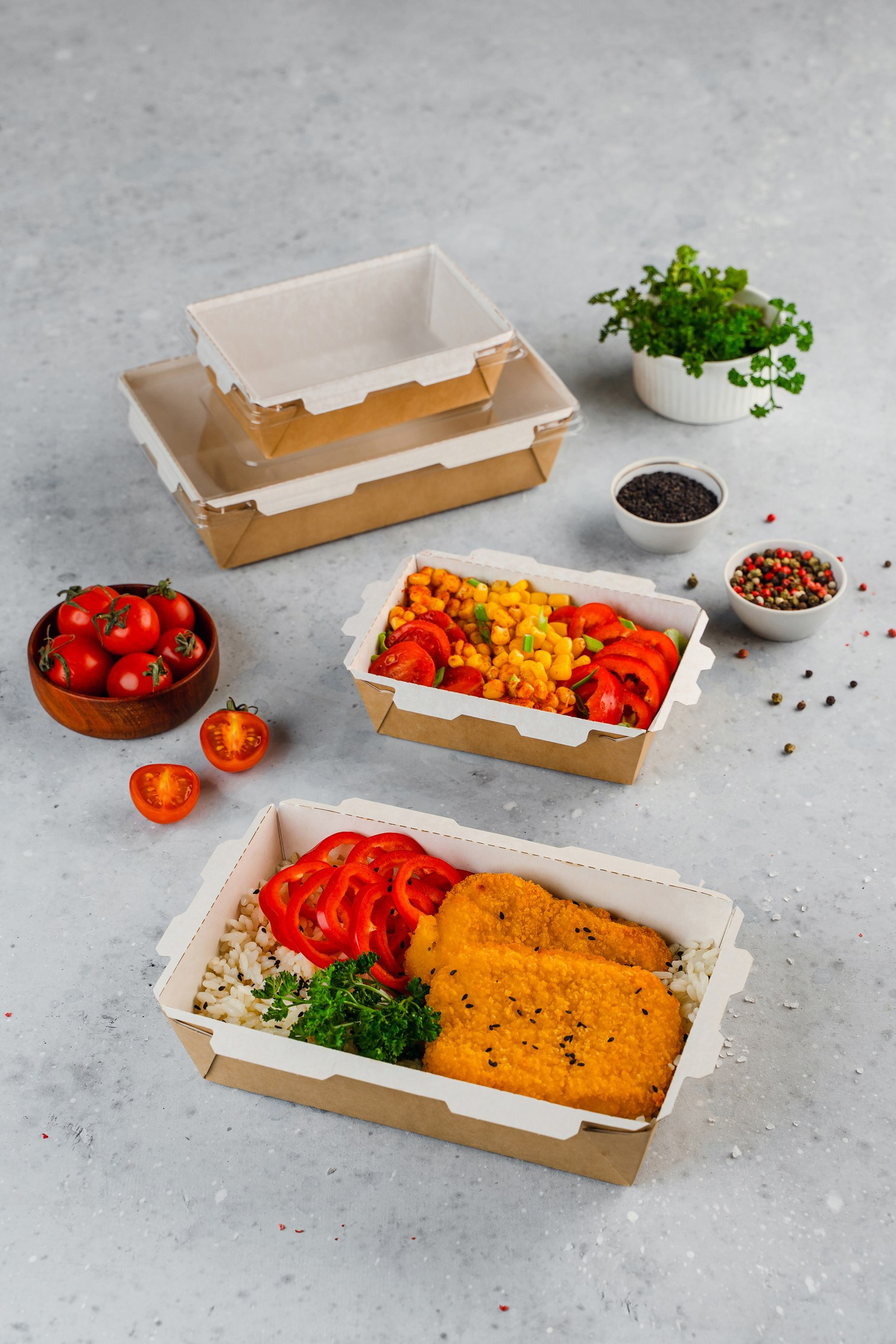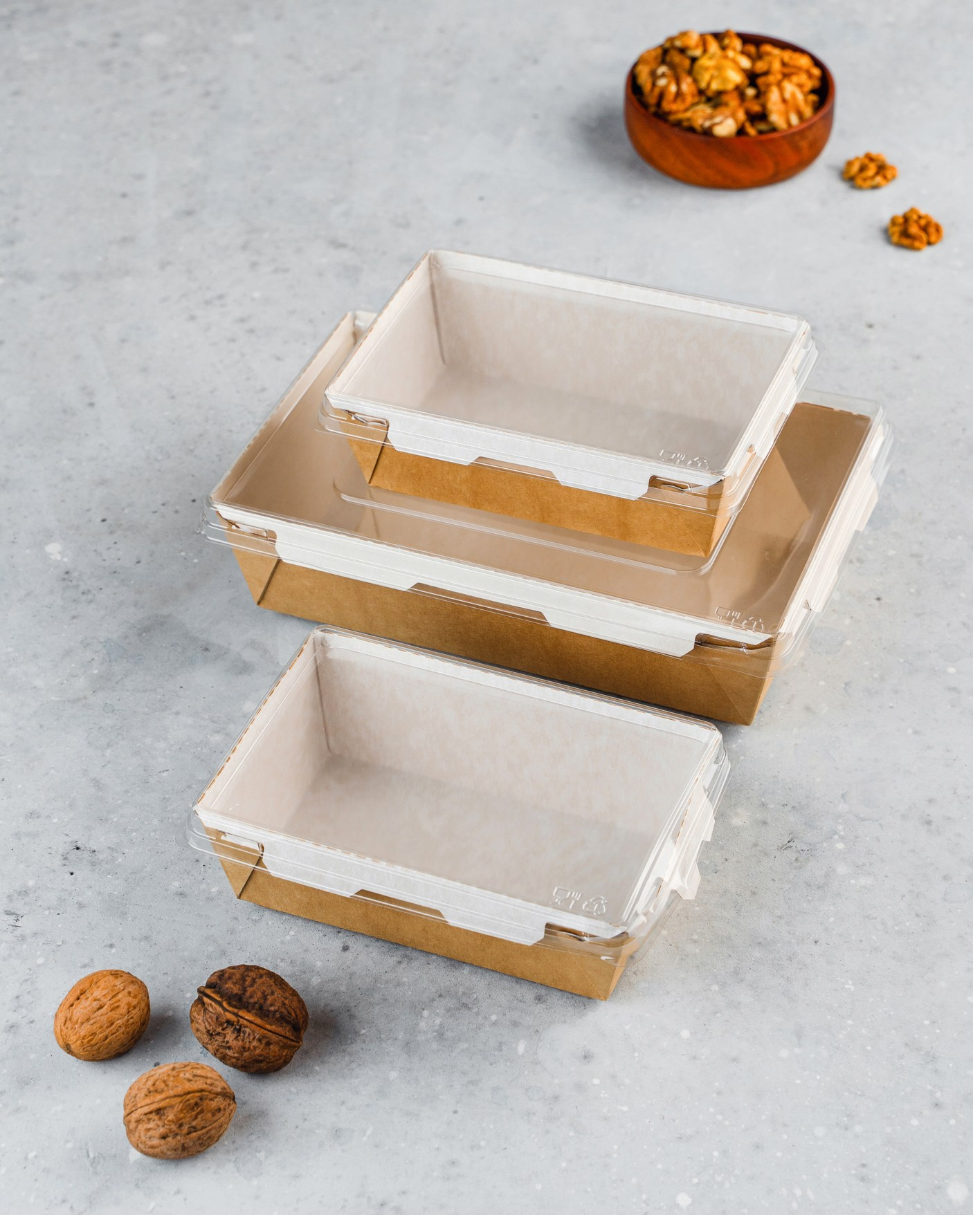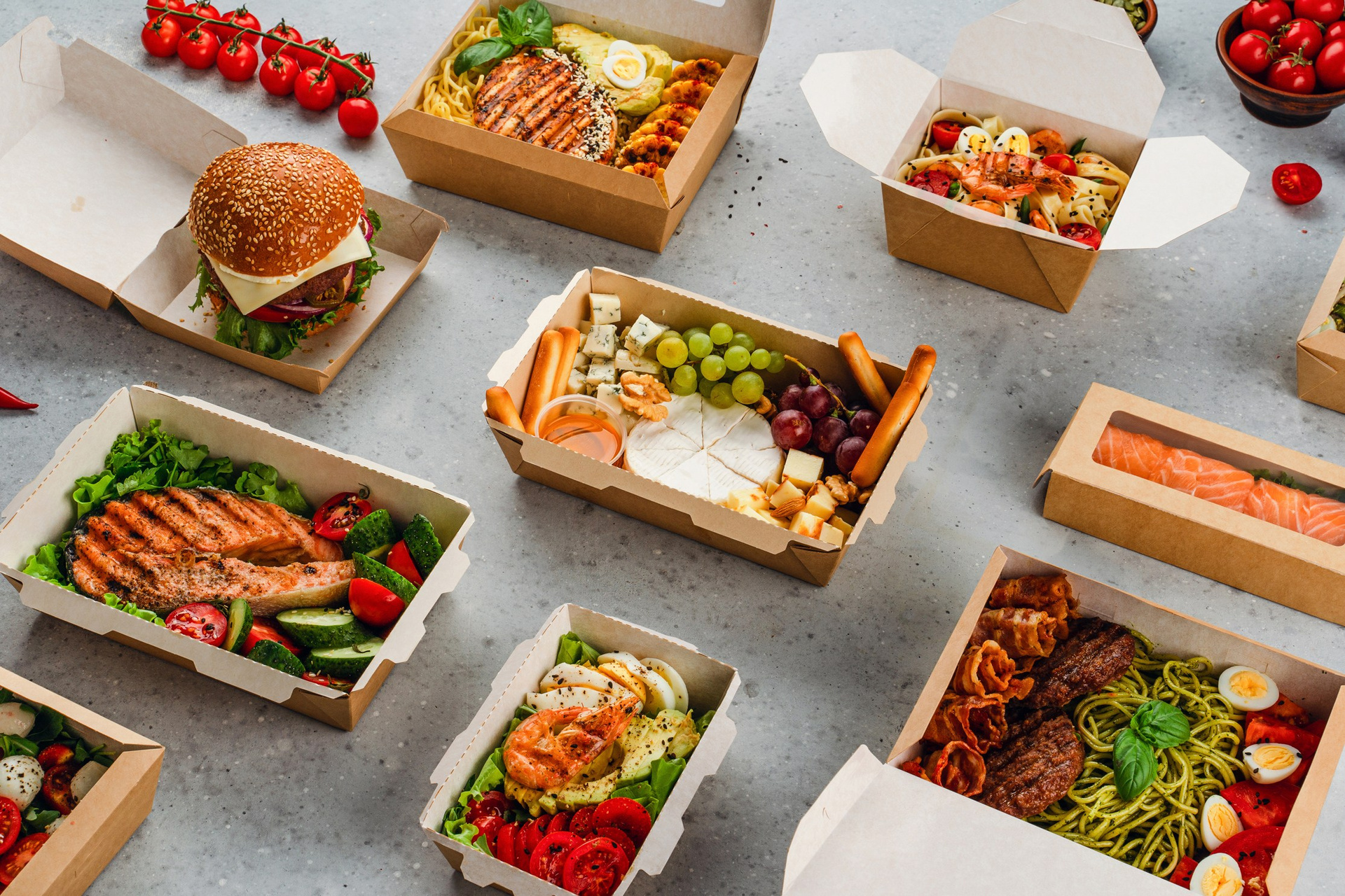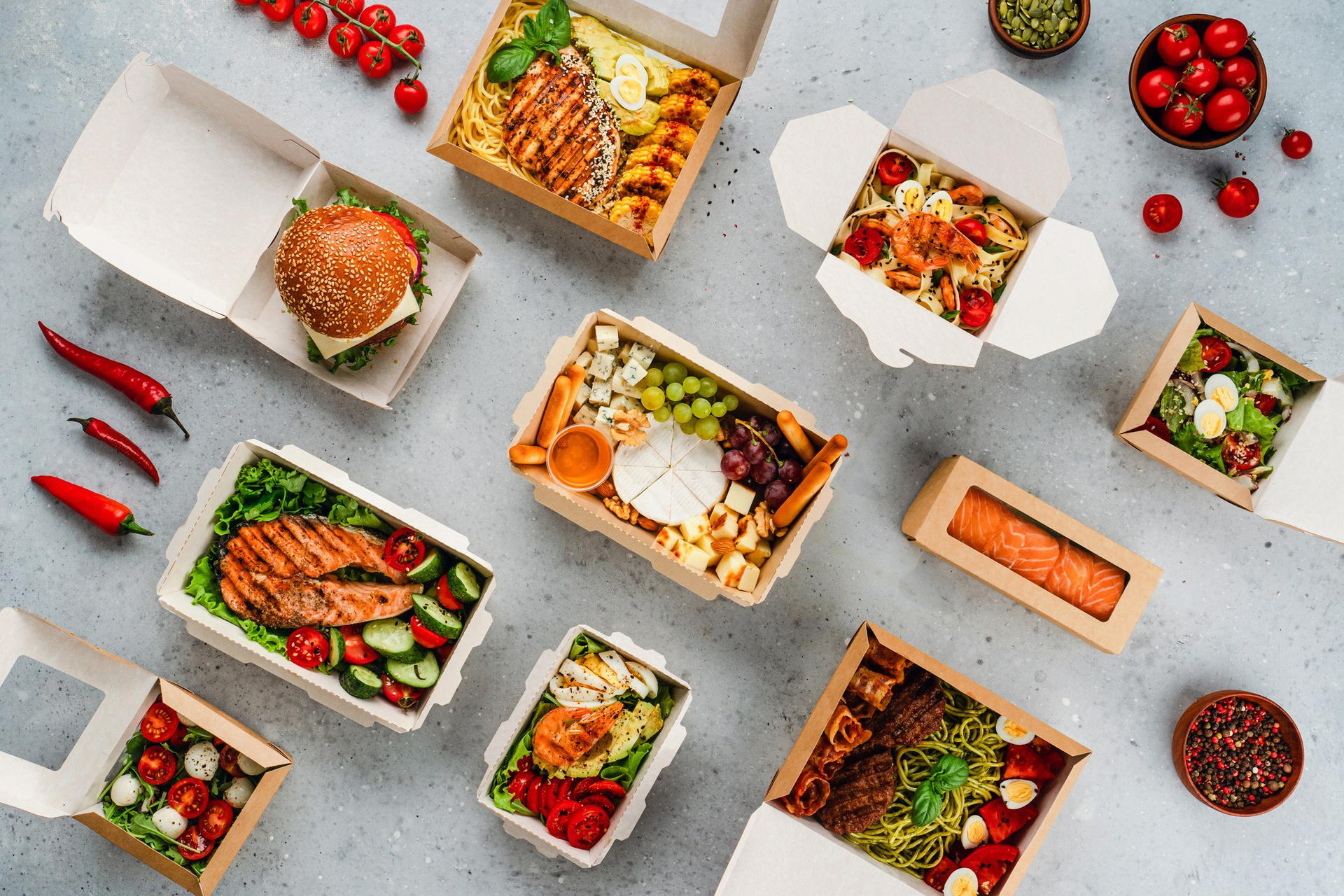 Салаты, закуски, горячее и десерты — каждая позиция была продумана, чтобы подчеркнуть эргономику и назначение конкретной упаковки. Результат: цельный визуальный сторителлинг, закрывающий все задачи бренда.