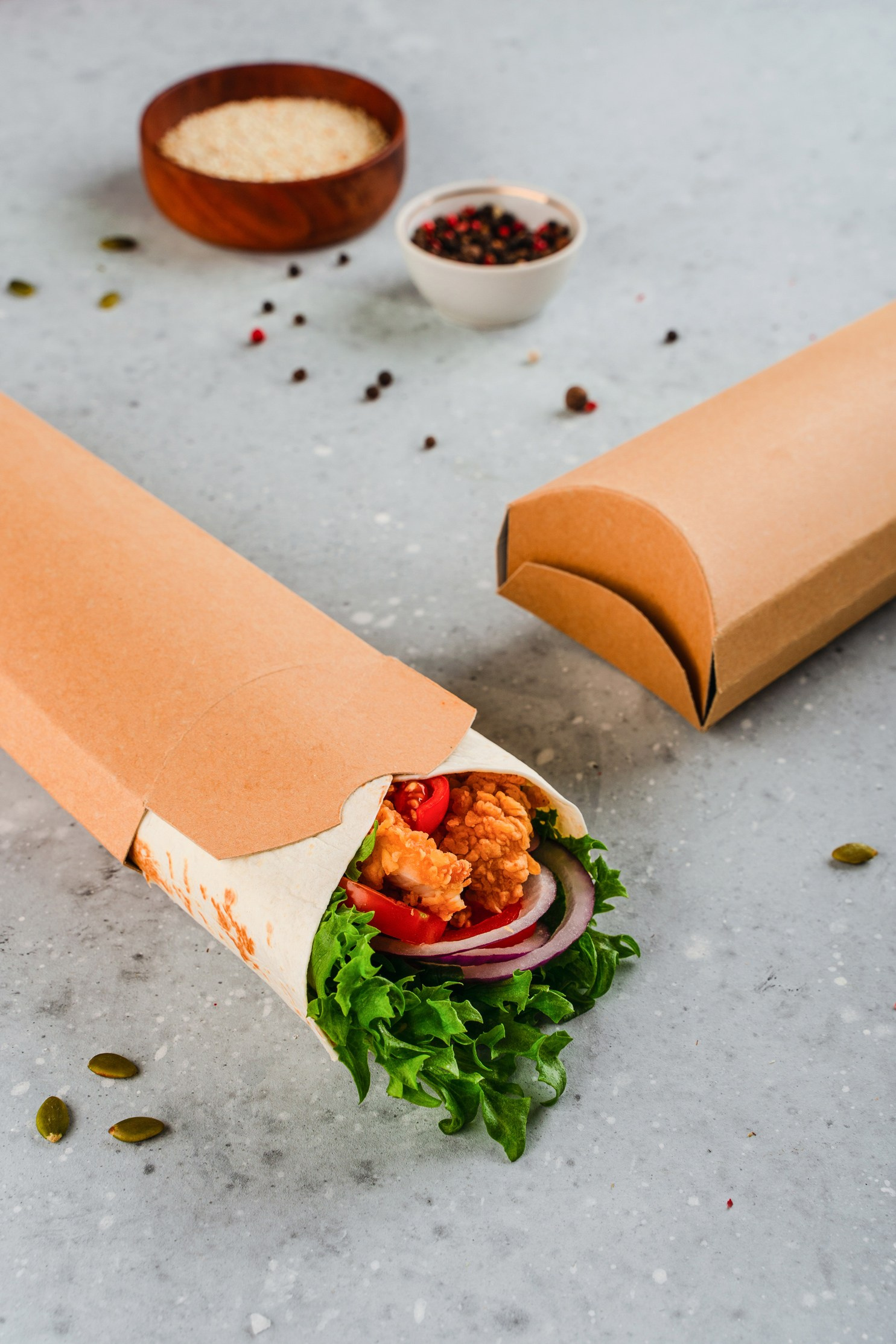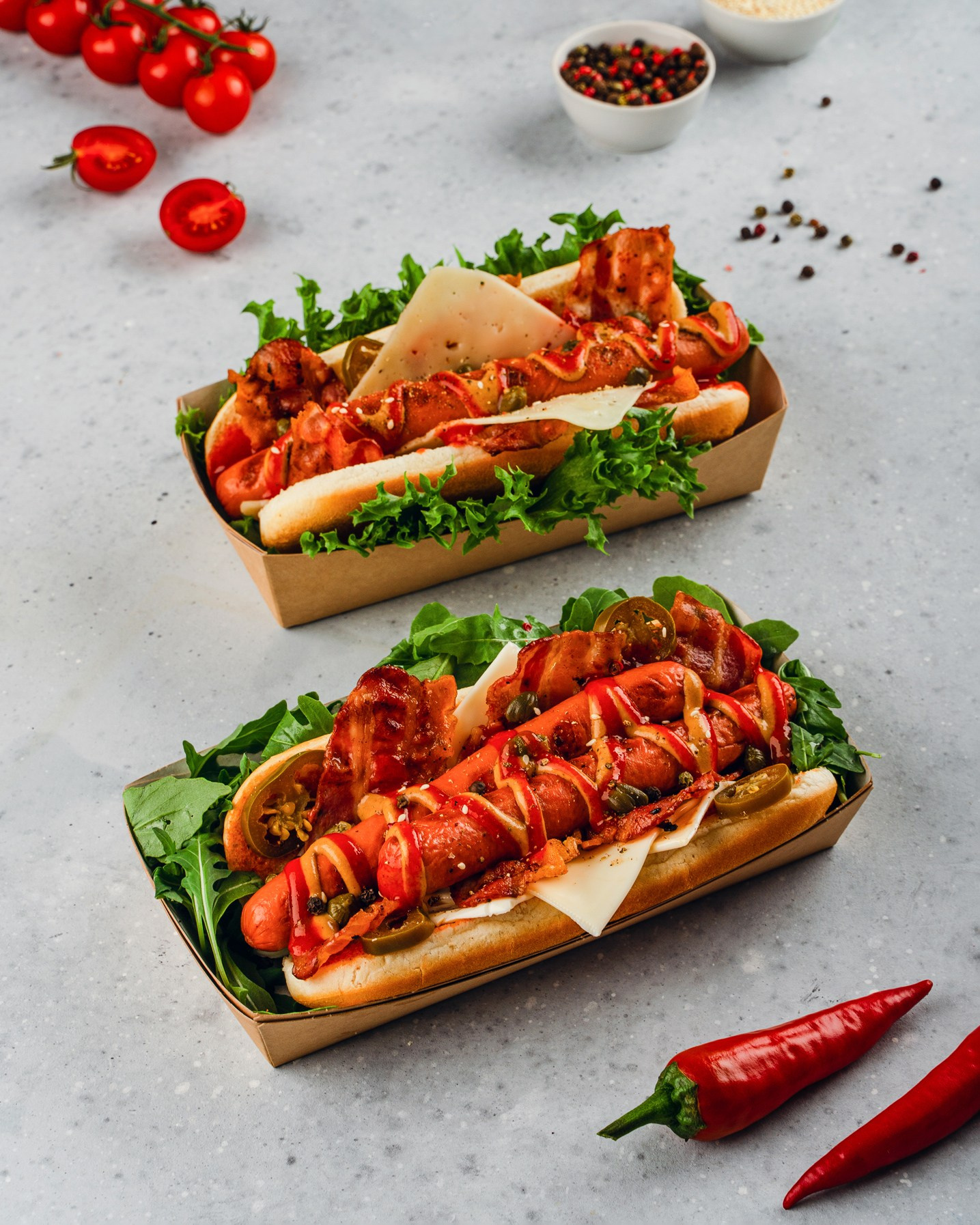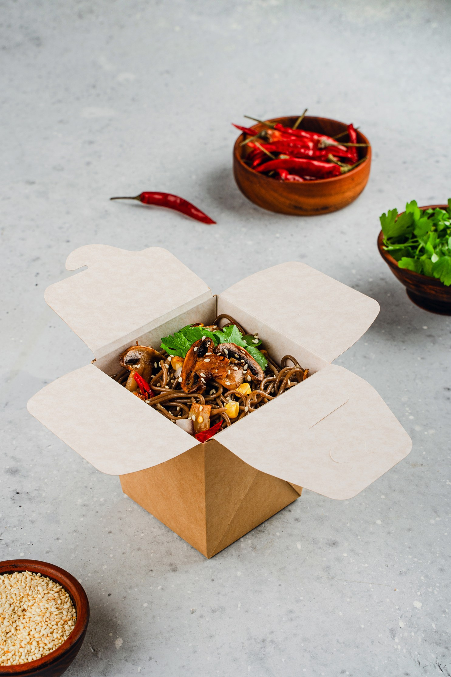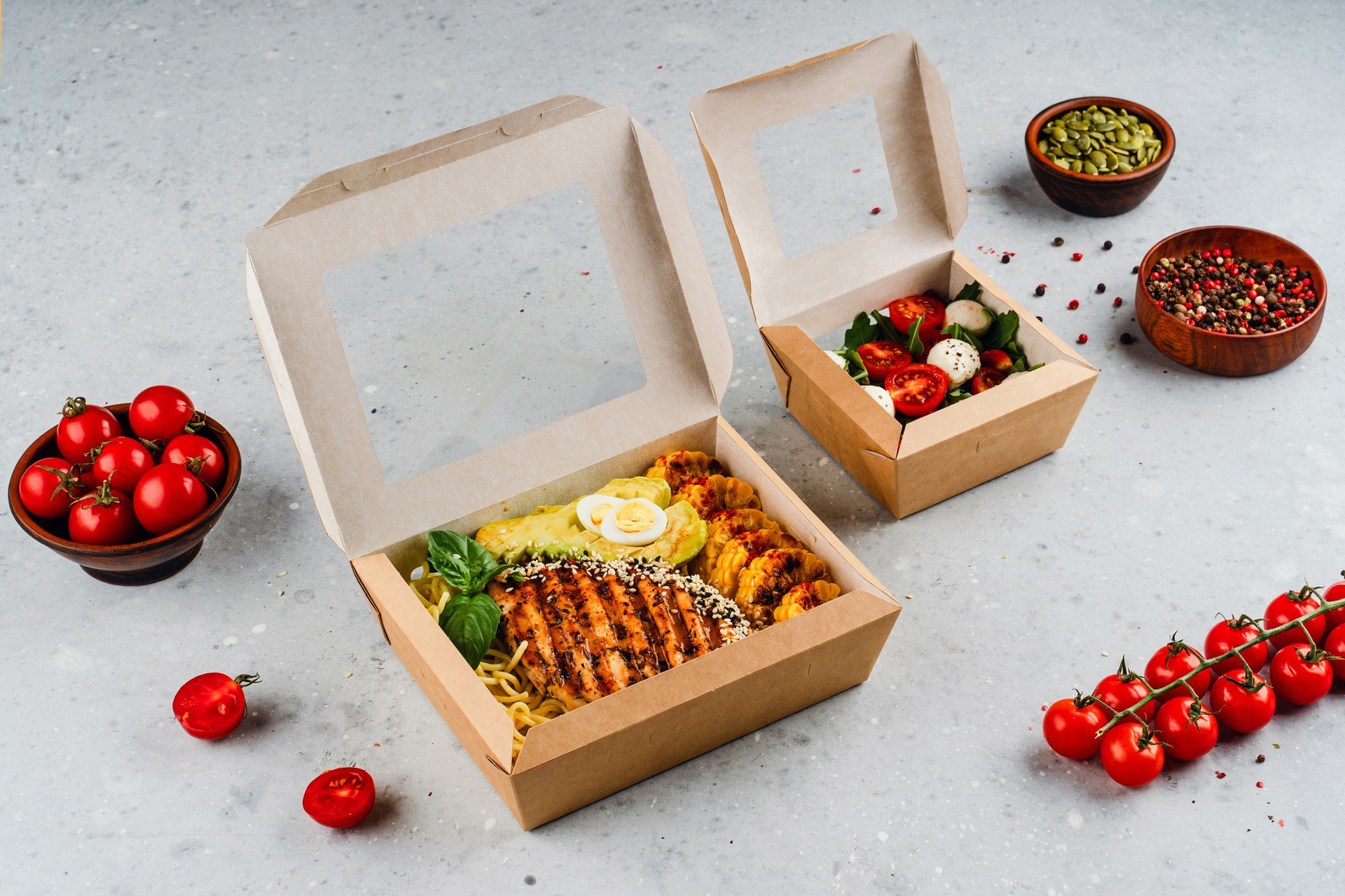 Салаты, закуски, горячее и десерты — каждая позиция была продумана, чтобы подчеркнуть эргономику и назначение конкретной упаковки. Результат: цельный визуальный сторителлинг, закрывающий все задачи бренда.